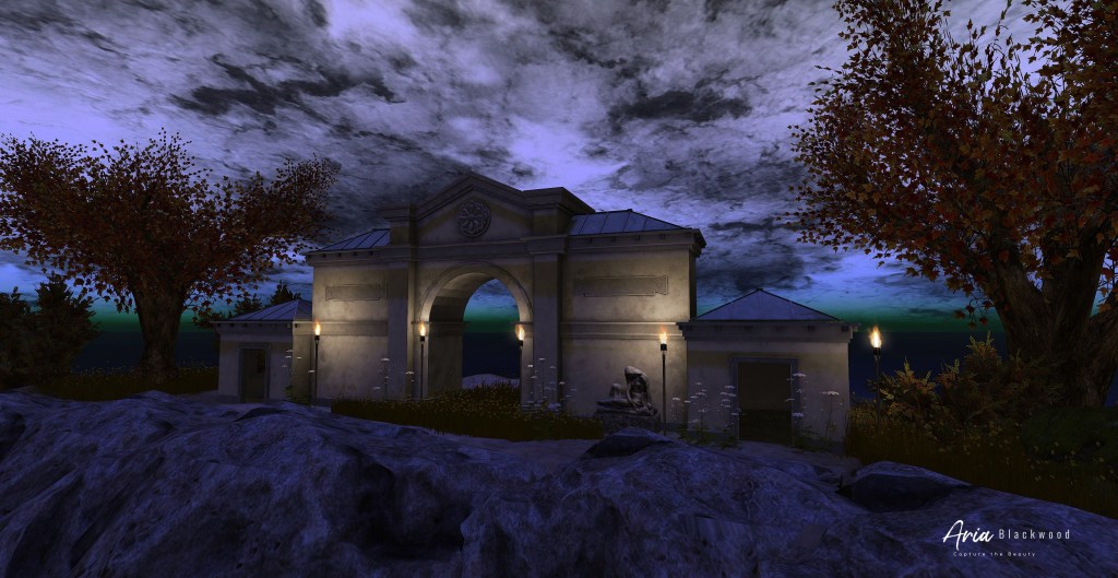 Hurry over to the Halloween Shop and Hop to pick up Specter Skies “Doom Pack”. Landmark to Halloween Shop and Hop I chose to use the “Abyss” EEP for the following photo on my sim Tranquility Isle which is decorated to celebrate the beauty of autumn in all its colorful splendor!